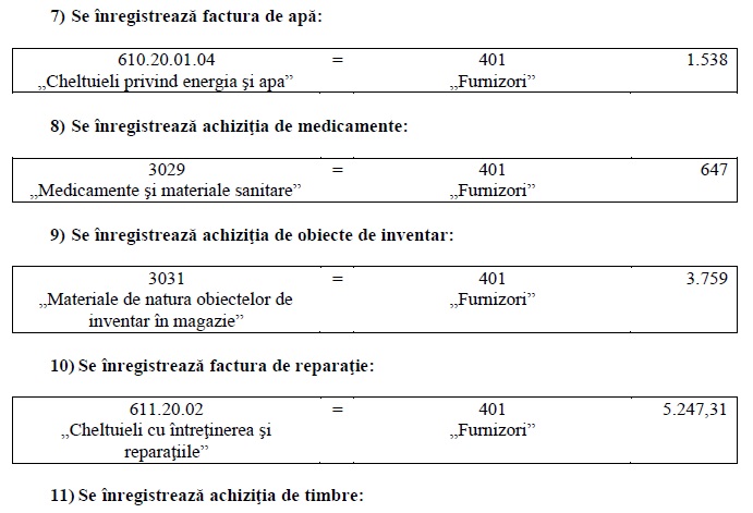 - Se primesc prin donatie alimente in suma de 4.326 lei si obiecte de inventar in suma de 8.435 lei;