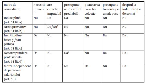 Concedierea poate fi dispusa in urmatoarele situatii: